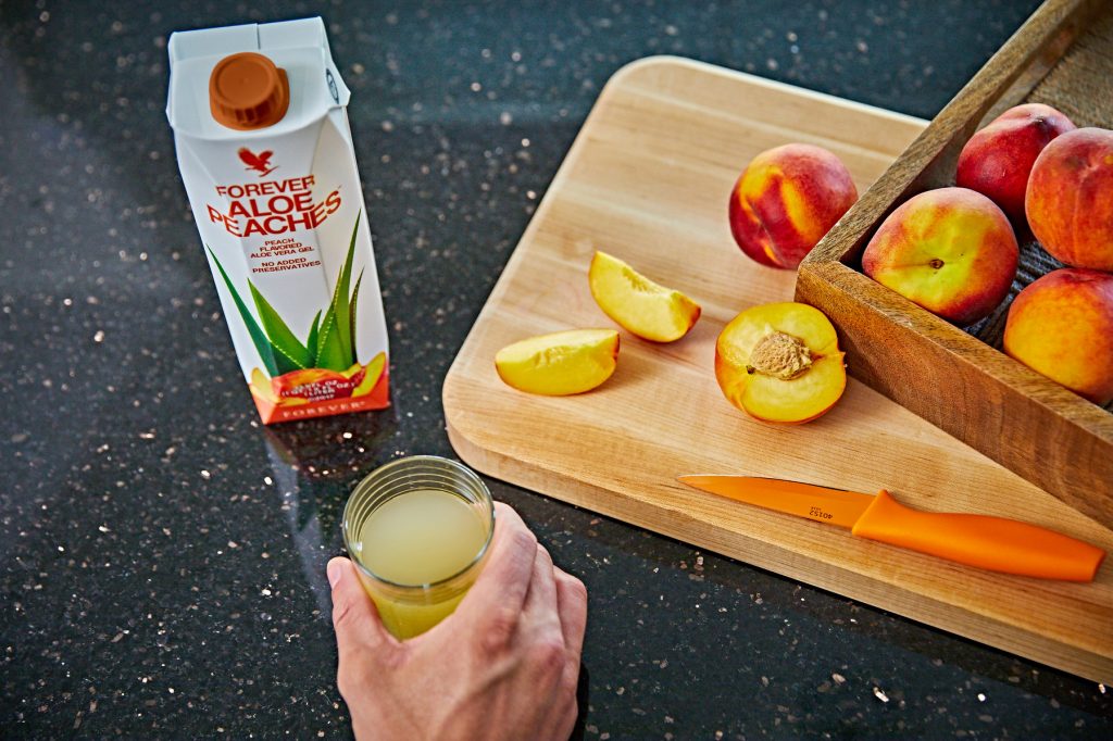 Forever ha combinado el dulce sabor de duraznos madurados por el sol con todos los beneficios del gel de aloe vera del interior de la hoja.